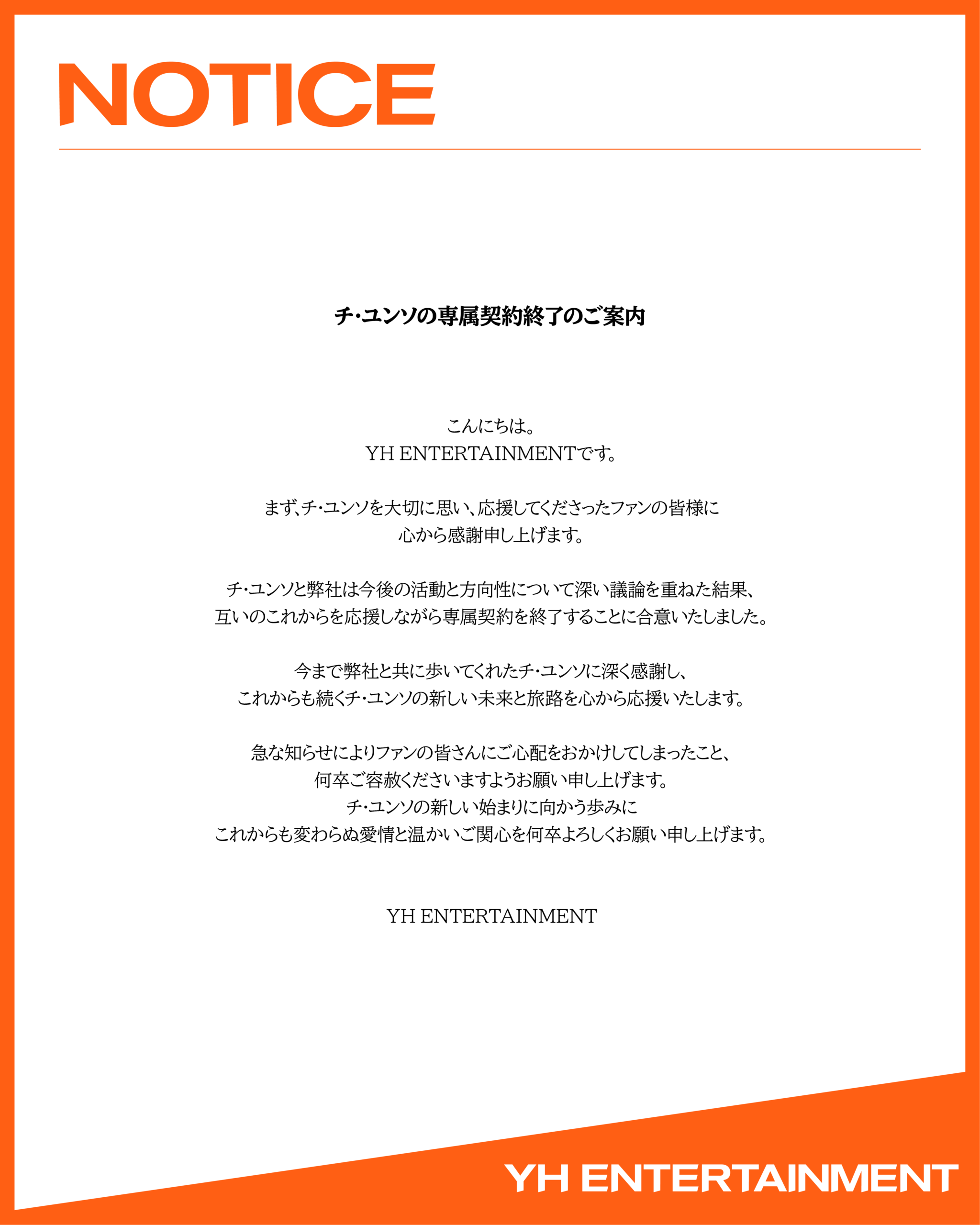 チ・ユンソの専属契約終了のご案内