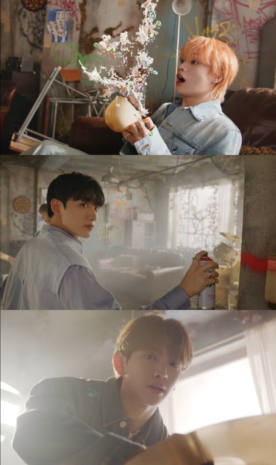 영상은 ‘STOP’이라 쓰인 벽을 빨간색 마커로 그래피티하는 형섭의 모습으로 시작한다. 긴장감이 감도는 음악 사이로 멤버들의 패기 넘치는 모습이 하나 둘 공개되는 가운데 루의 소년미 넘치는 얼굴이 시선을 사로잡는다. 이어 음악이 밝고 경쾌하게 반전되며 완곡에 대한 궁금증을 높였다.