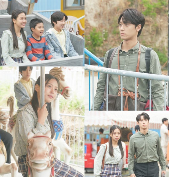 이런 가운데, 오늘(18일) 공개된 사진에서는 두 사람이 동생 김명수(조이현 분), 황정태(최승훈 분)와 함께 유원지에 놀러 간 모습이 포착됐다. 김명희는 회전목마와 바이킹을 타며 동생들과 행복한 한때를 보내는 한편, 황희태는 온갖 가방을 둘러멘 채 굳은 표정으로 서 있어 무슨 사연인지 호기심을 자극한다.